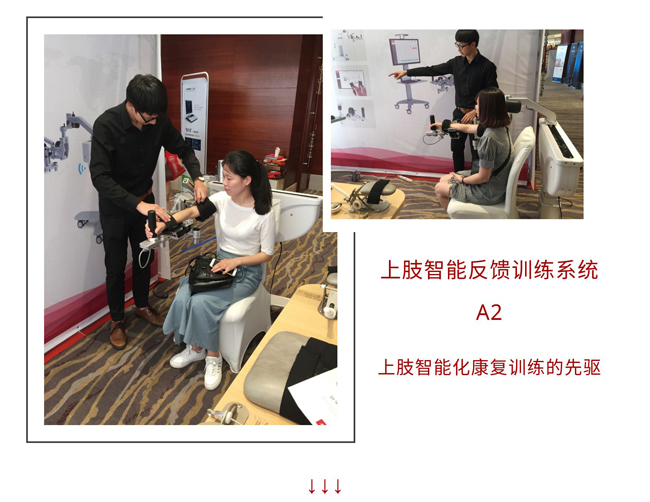 一康醫療在此次會議上展出了三款產品:上肢智能反饋訓練係統A2、手功能綜合訓練桌YK-M12、超級幹擾電治療係統PE5