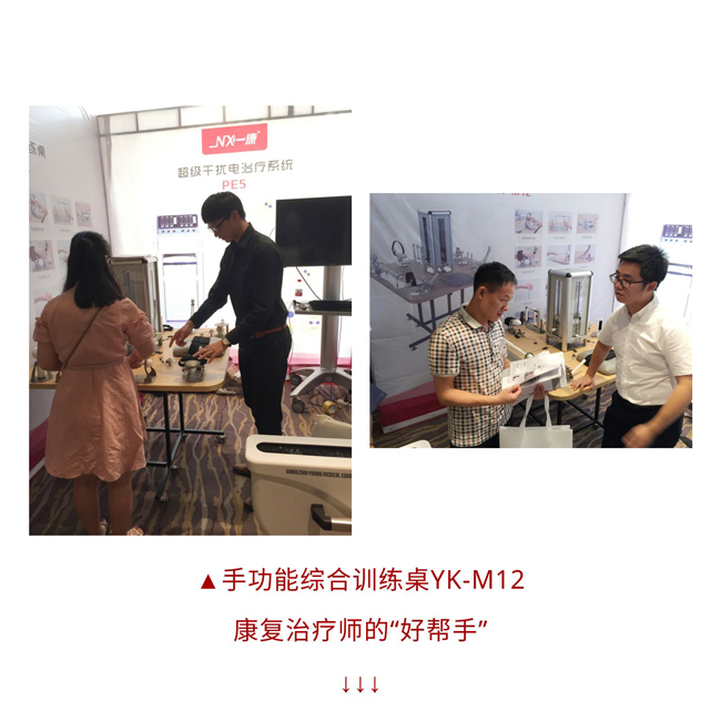 一康醫療在此次會議上展出了三款產品:上肢智能反饋訓練係統A2、手功能綜合訓練桌YK-M12、超級幹擾電治療係統PE5